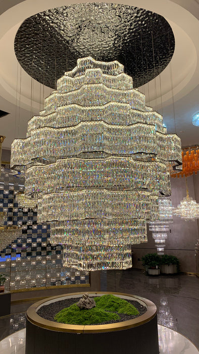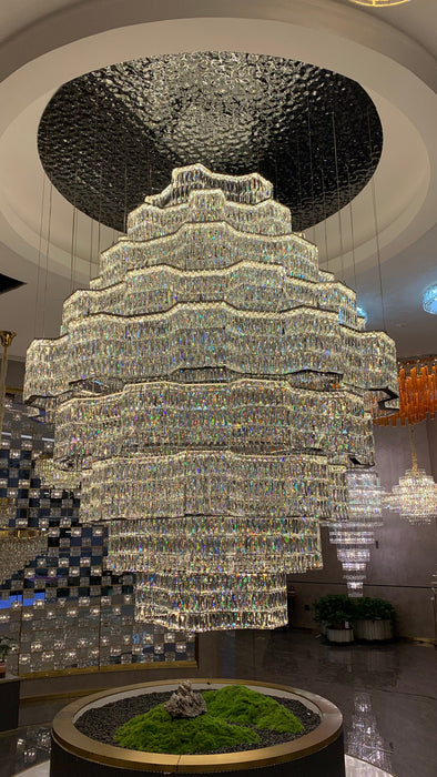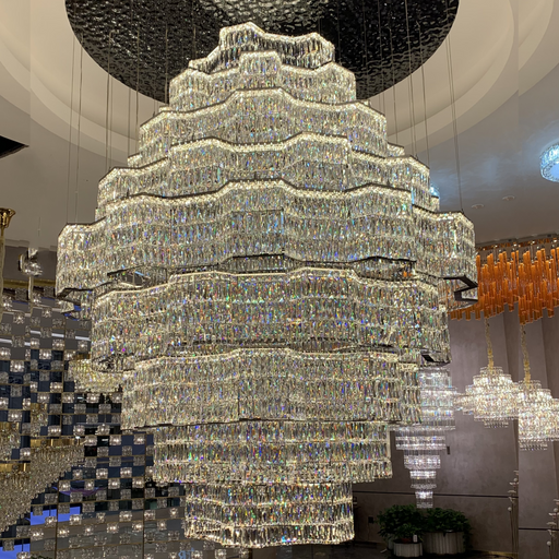 ثريا فاخرة متعددة الطبقات كبيرة الحجم باللون الكروم