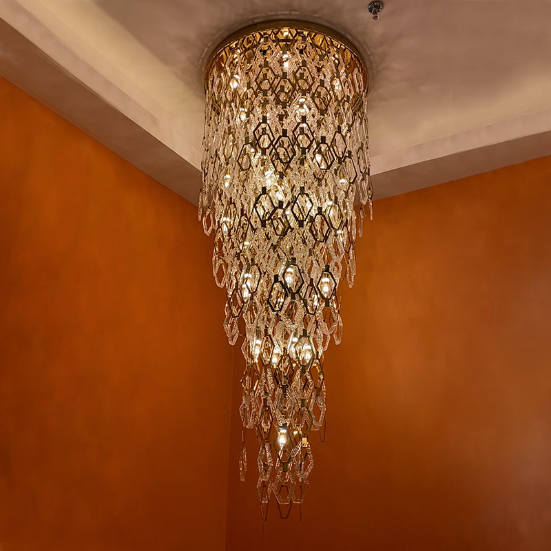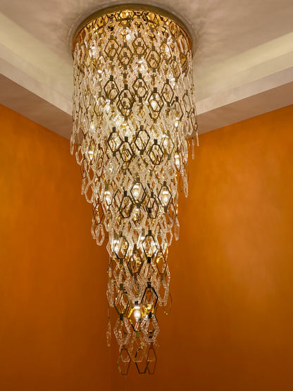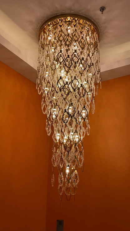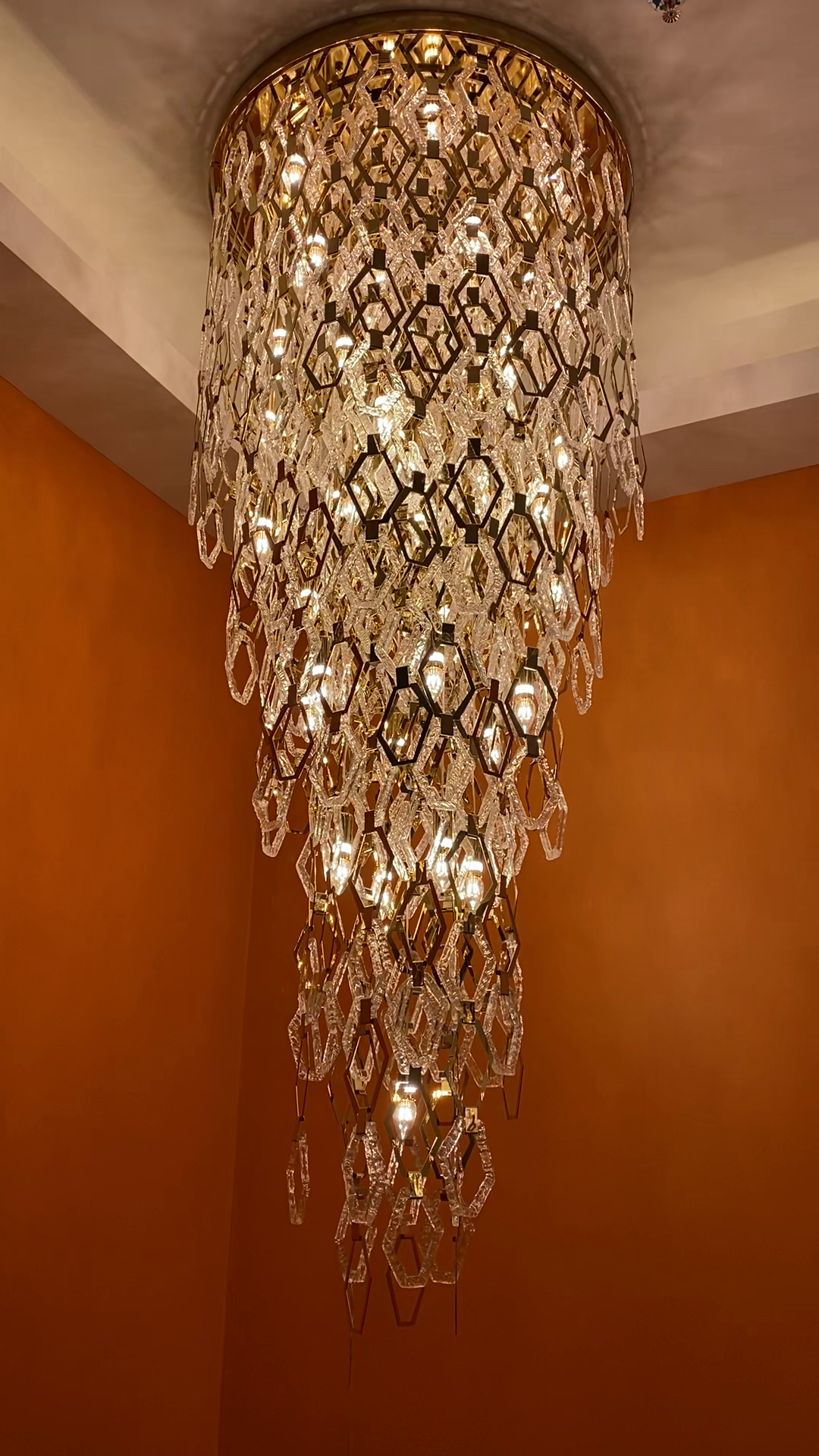 ثريا كريستالية سداسية حديثة مدمجة في السقف للسلالم/البهو
