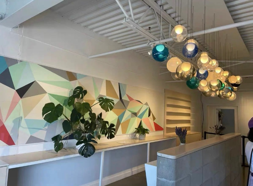 ثريا ملونة متدرجة اللون بتصميم كرة على شكل ثريا عصرية