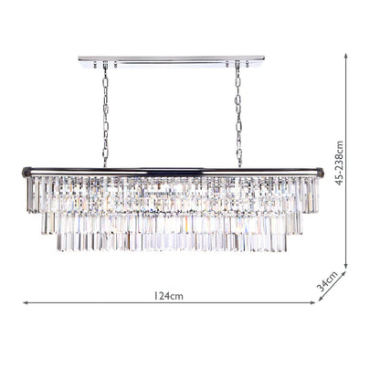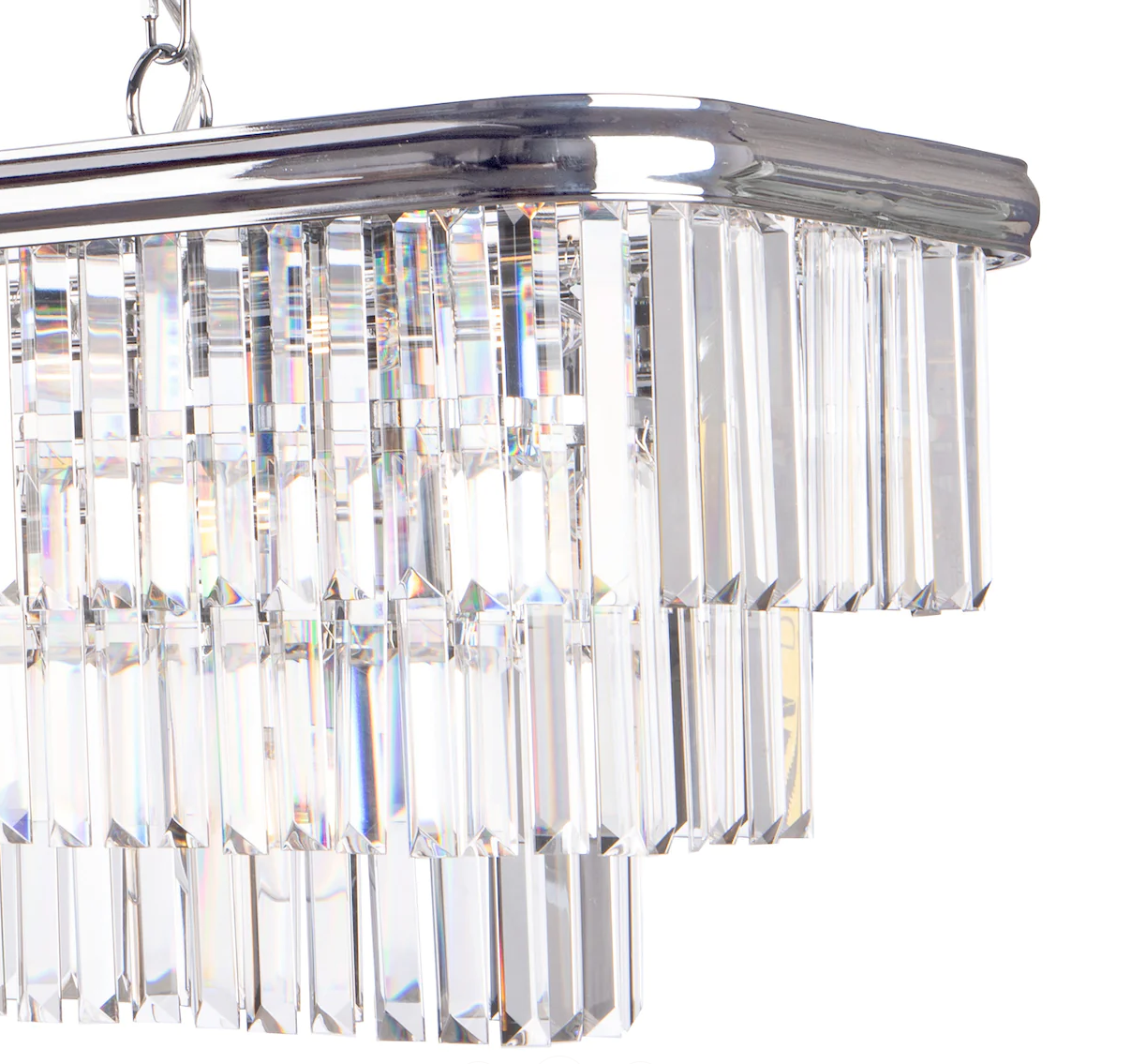 ثريا كريستالية مستطيلة الشكل من Rylight ذات 10 مصابيح بلمسة نهائية من الكروم المصقول