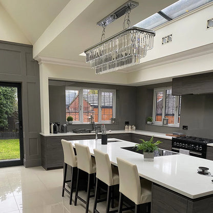 توفر الثريا الكريستالية المستطيلة Rylight 10-Light تصميمًا أنيقًا بلمسة نهائية من الكروم المصقول. تتناسب هذه الثريا المهيبة مع أي منزل أو عقار تجاري، وهي مزينة بقطع كريستال مستطيلة فاخرة للحصول على مظهر مذهل. مثالية للتثبيت في مناطق مثل بارات الإفطار أو غرف الطعام أو جزر المطبخ، ستضيف قلادة الكريستال الخطية الخفيفة المكونة من 10 لمسة من اللمعان والرقي.