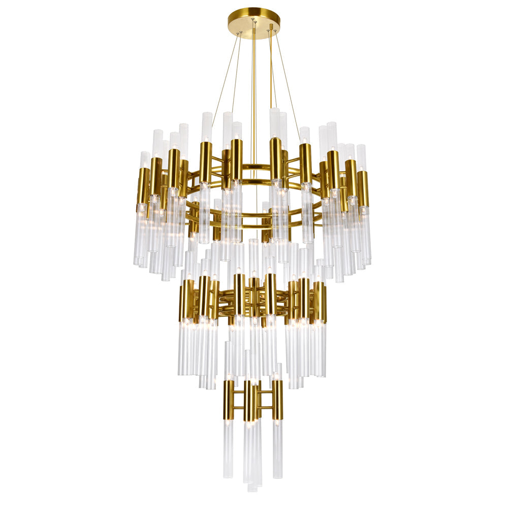 أضف لمسة عصرية إلى السقف الخاص بك مع ثريا Rylight ذات الأنابيب الزجاجية المستديرة ذات 3 طبقات. تتميز هذه الثريا السفلية كبيرة الحجم بأكثر من 100 مصباح G9 بقدرة 5 وات، موضوعة على أنابيب زجاجية شفافة لتوفير إضاءة وافرة لا تنفد أبدًا. تضيف هذه الثريا الأنيقة المرفقة بثلاث طبقات مستديرة بلمسة نهائية ذهبية ساتانية، عنصرًا بصريًا أنيقًا ومتطورًا دون إرهاق مساحتك.