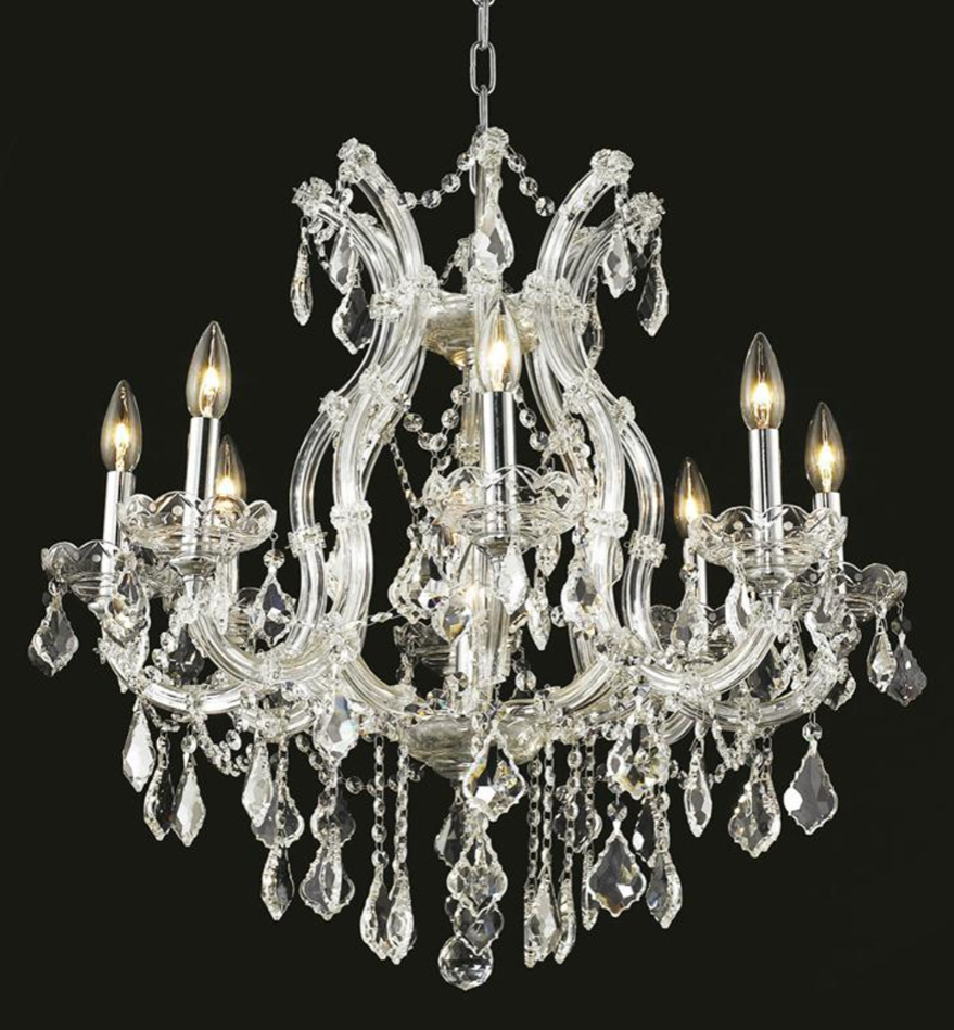 تنضح هذه الثريا الكريستالية Rylight 9/19/49-Light بالأناقة والعظمة، حيث تلتقط الكريستال المصقول والمقطع يدويًا بنسبة 100% الضوء من مصابيح الشموع وتعكسه. تتميز هذه القطعة الفاخرة بمظهر خالد بلمسة نهائية من الذهب/الكروم، ومن المؤكد أنها سترفع أي تصميم داخلي بسحرها المتطور.