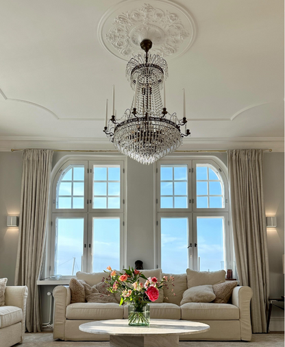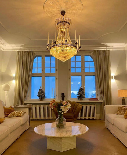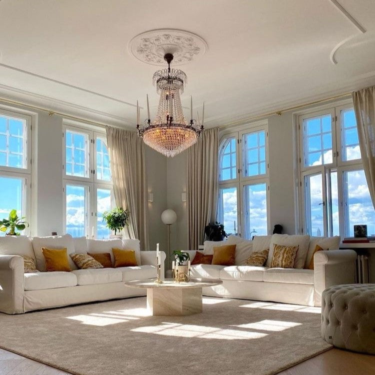 تضفي Rylight Empire Chandelier لمسة من الفخامة على أي منزل. يتميز بتصميم إمبراطوري كلاسيكي مع إطار معدني مطلي بالكروم ومناشير كريستال K9، ويوفر ما يصل إلى 5/6/8/14 ذراعًا للحصول على أجواء مشرقة ومتألقة. مزيج مثالي من الراحة والأناقة، وسيدوم جماله الخالد لسنوات قادمة.