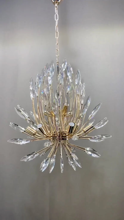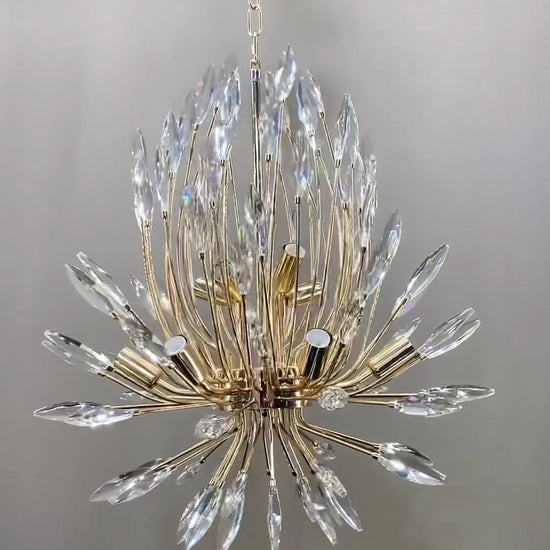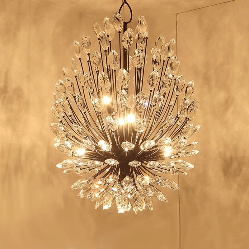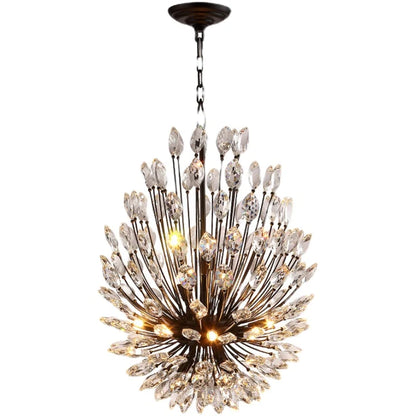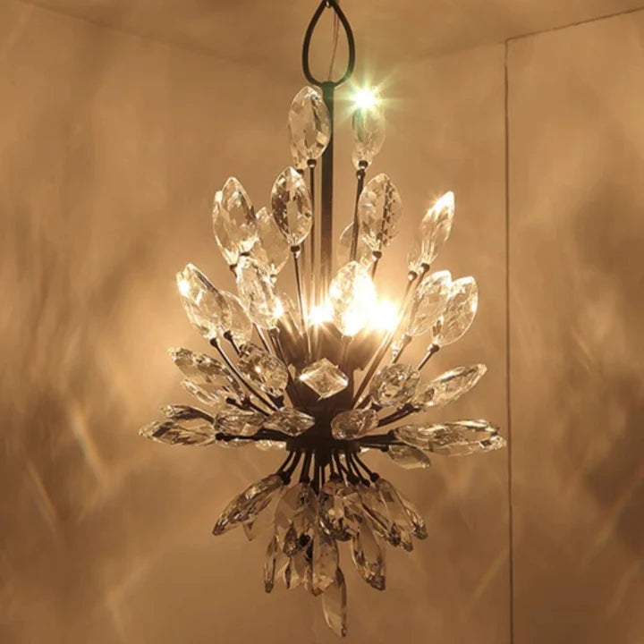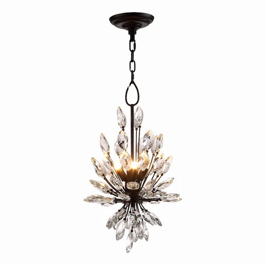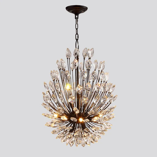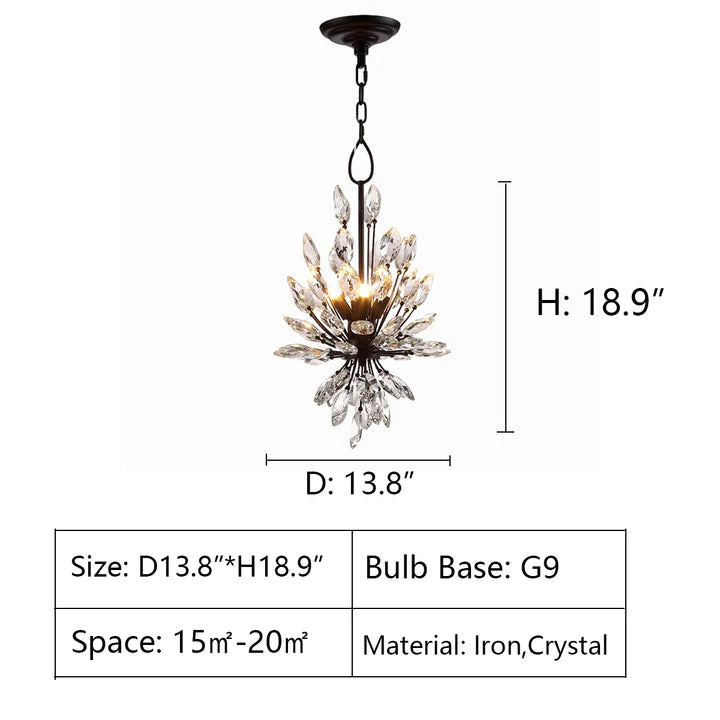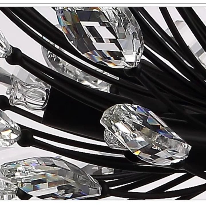 تتميز هذه الثريا الأنيقة بتركيبة فنية متعددة الطبقات مع كل عصا حديدية سوداء مزينة بخرزة على شكل ورقة كريستال وتألق متلألئ. يقدم جمالية الأزهار الصلبة والجمالية الرومانسية، ويبدو كما لو أن باقة من الزهور معلقة من السقف. مثالية لغرف المعيشة وغرف الطعام والمقاهي وخزائن الملابس وطاولات القهوة والمساحات التجارية الأخرى.