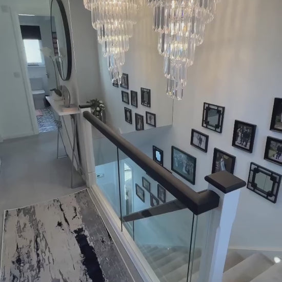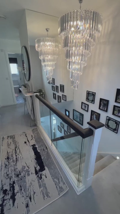 تخلق هذه الثريا الكريستالية الحلزونية متعددة الطبقات مظهرًا خالدًا بأناقة عتيقة. مصنوع من إطار مطلي بالكروم ومناشير أكريليك لامعة، ويمكن تعديل تعليق السلسلة ليناسب ارتفاعات السقف المختلفة، مما يسمح لهذه القطعة بإضاءة أي غرفة معيشة كبيرة أو مدخل.