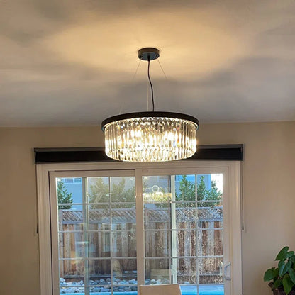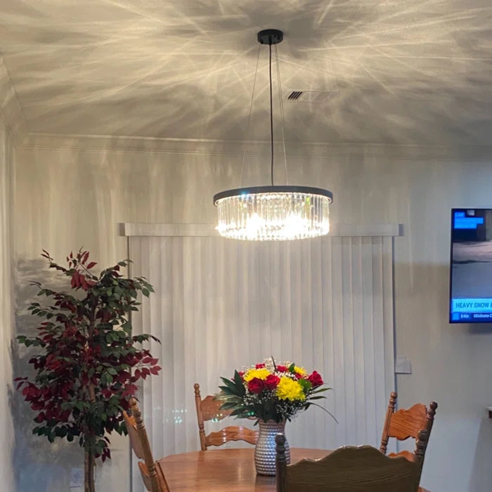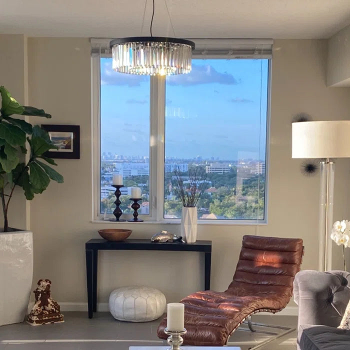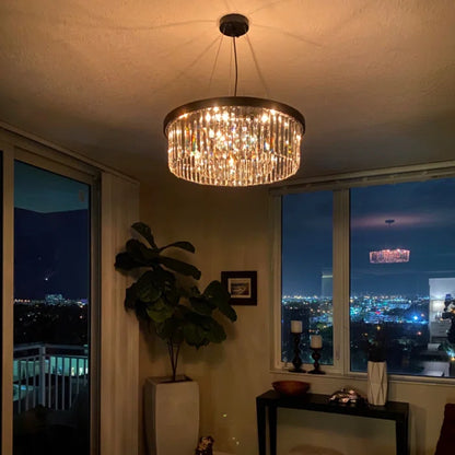ثريا كريستالية مستديرة من Rylight ذات طبقة واحدة باللون النحاسي/الأسود