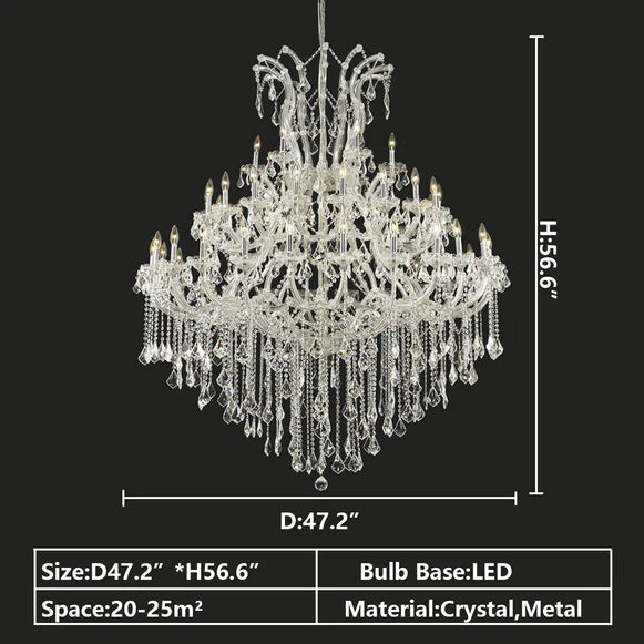 Tradition and fashion are perfectly integrated in this chandelier, the light of silver crystals is perfectly combined with the chrome body of the chandelier, the shining crystal pendant is suspended from the branch-shaped arm, the crystal chain connected to it seems to be shining, this lamp integrates the prosperity and refinement of the last century European style, no matter what place it is decorated can bloom with unparalleled beauty.