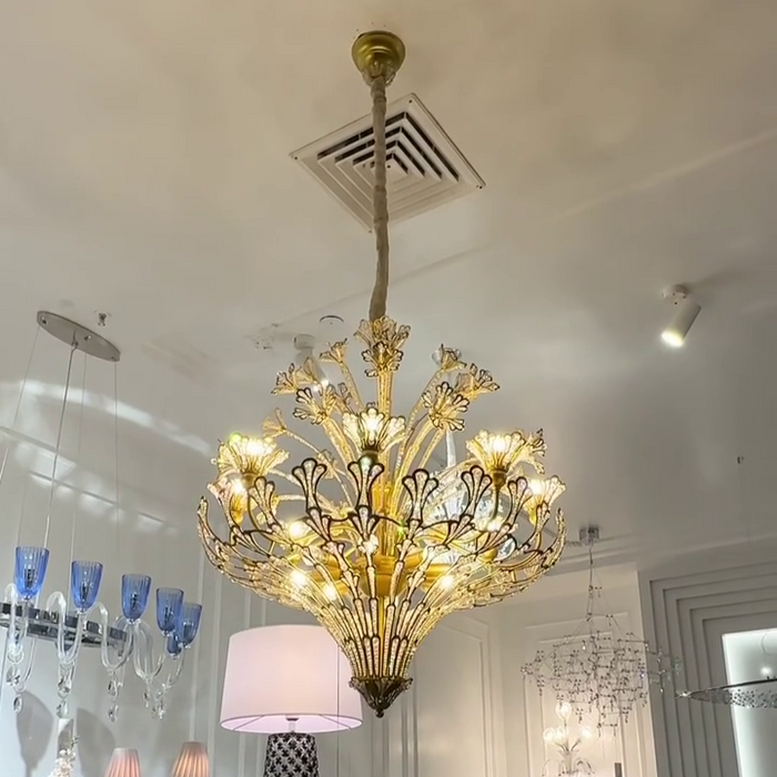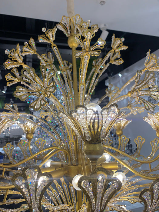 Crafted with precision and adorned with sparkling crystals, our French Style Floral Chandelier adds elegance to any room. The delicate metal design features intricate leaves and flowers, creating a beautiful and luxurious centerpiece. Bring a touch of sophistication to your space with this gold-finished chandelier.
