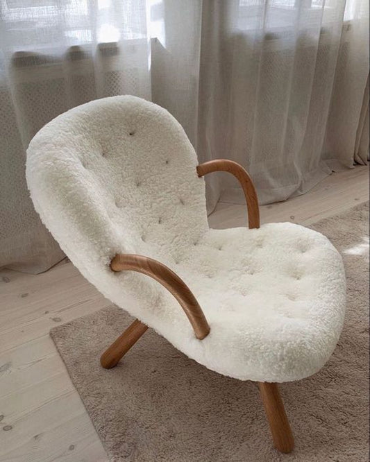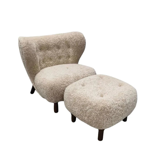 Classic Cozy White Fleece Plush Accent Lounge Chair with Ottoman