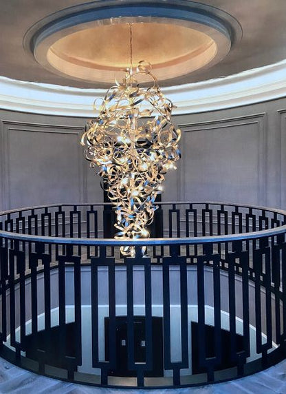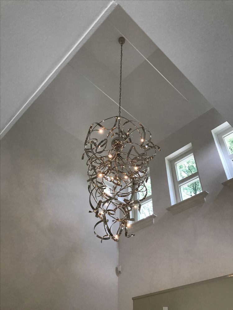 Deze Rylight 12/14/16-Light Artcraft spiraallinthanger voegt een vleugje elegantie toe aan elke kamer. Door de combinatie van kunstontwerp en lint trekt het de aandacht met zijn unieke en exclusieve ontwerp. Deze dynamische hanglamp is perfect voor woonkamers, trappenhuizen en meer en kan worden aangepast aan uw behoeften. Pas het formaat en de kleur aan, zodat deze bij uw ruimte passen en uw stijl tot uitdrukking brengen.
