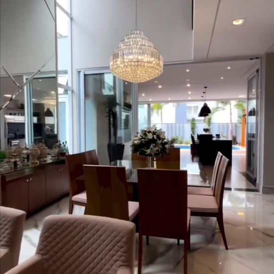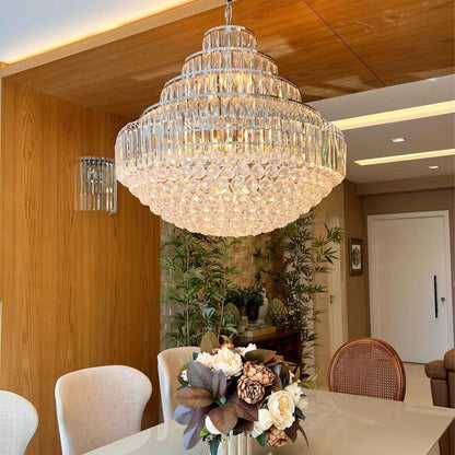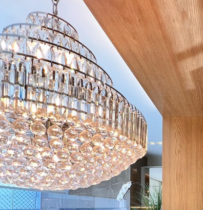 De Rylight 5-laags ronde kristallen regendruppel-gelaagde kroonluchter is vakkundig vervaardigd uit hoogwaardig doorschijnend kristal, waardoor het de perfecte verlichtingsarmatuur is voor een luxueus huis. De zorgvuldig gerangschikte kristallen brengen glans en elegantie in elke kamer en voegen een vleugje verfijning en weelde toe aan uw woonruimte. Met zijn hardware-behuizing straalt deze kroonluchter een zacht, mooi licht uit dat overal waar hij wordt geïnstalleerd een luxueuze sfeer zal creëren.