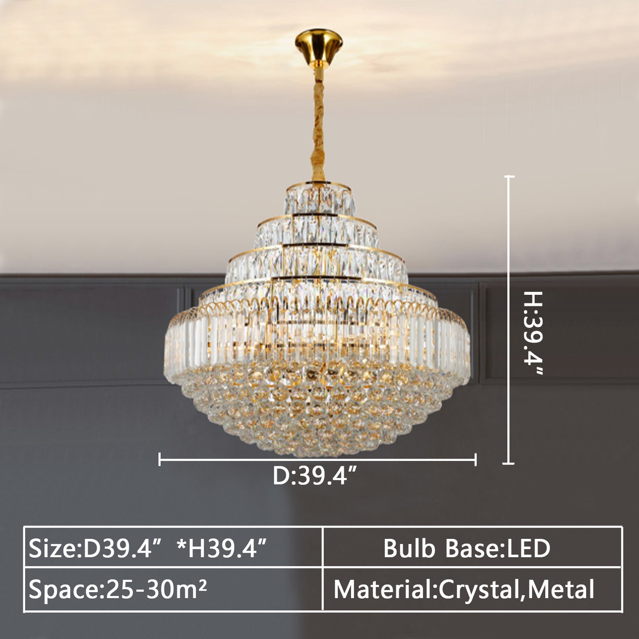 Rylight 5-laags ronde kristallen regendruppel-gelaagde kroonluchter