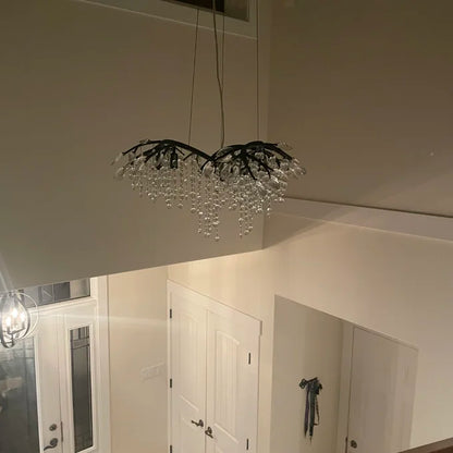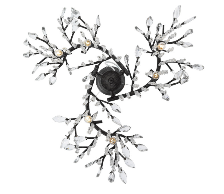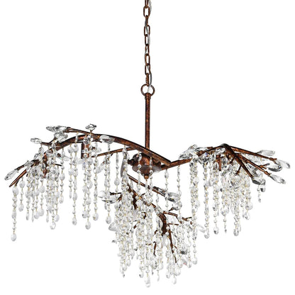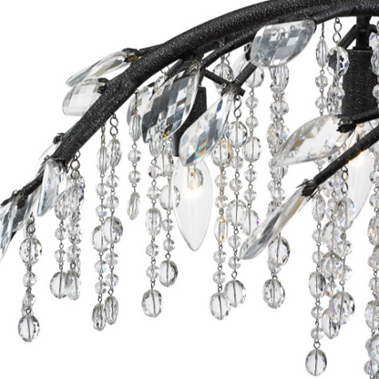Rylight 6/18-lichts brons/zwarte takkroonluchter met kristallen druppels