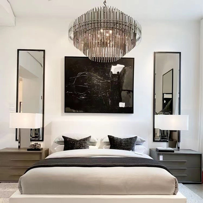 De Rylight Art Design buisvormige kristallen kroonluchter is perfect voor het creëren van een verfijnde, maar toch industriële sfeer. Met ingewikkeld kristal, een zwarte ijzeren afwerking en warme tinten kan deze kroonluchter een klassieke, eigentijdse stijl in elke kamer brengen.