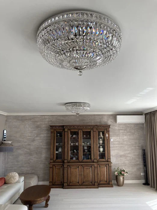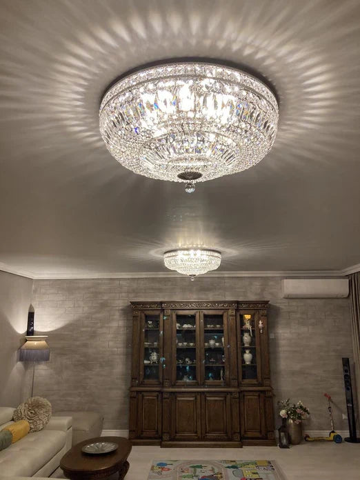 Modern 9/12/15-Light Flush Mount Crystal Chandelier in Gold/Silver Finish