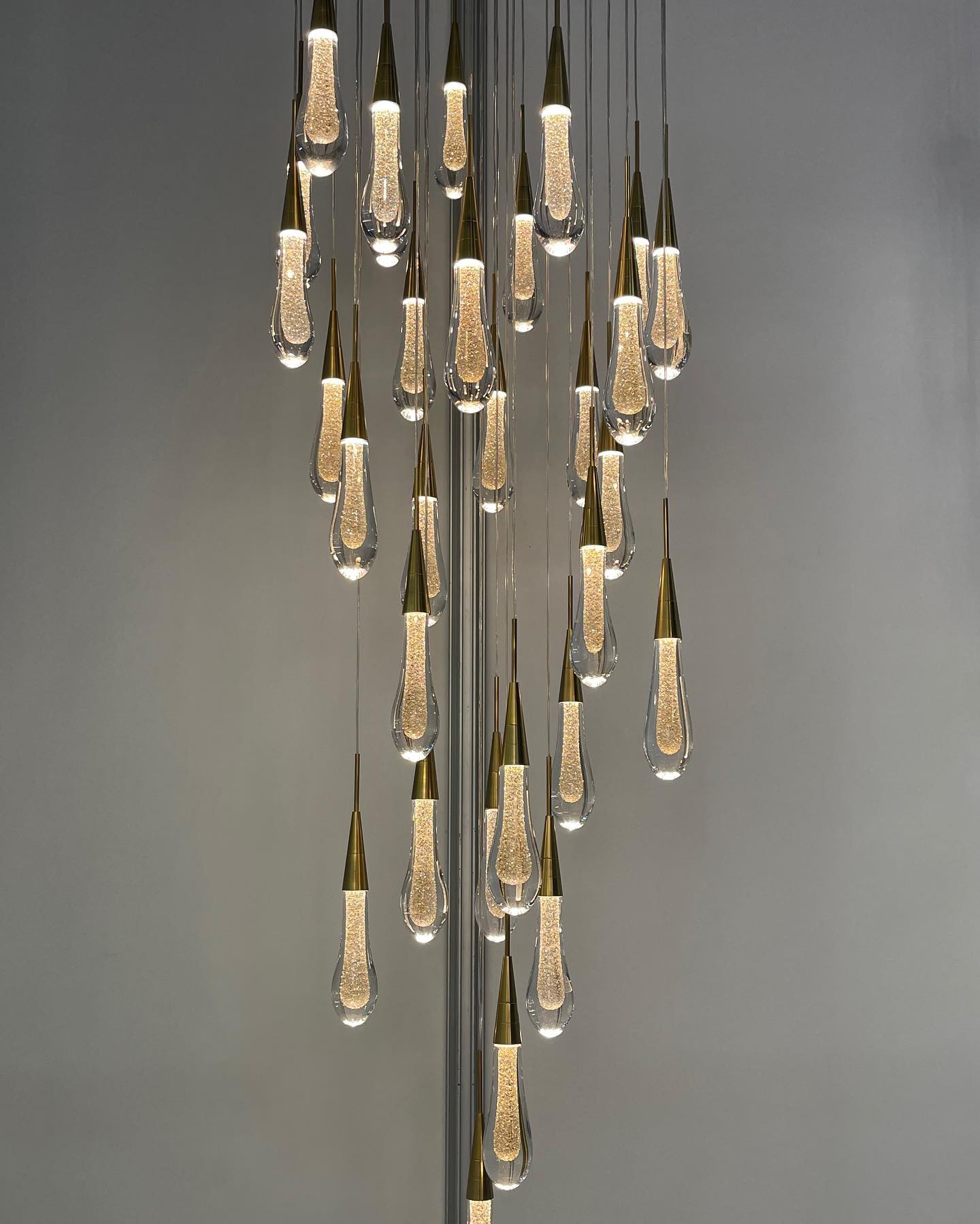 Modern Cascade Raindrop Round Spiral Crystal Chandelier for Staircase/Foyer
