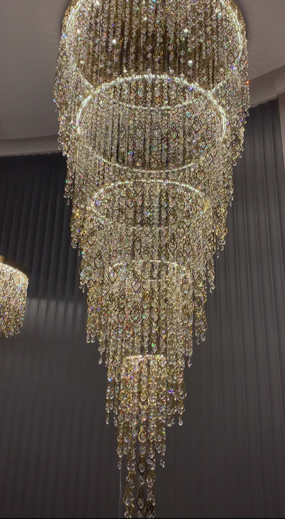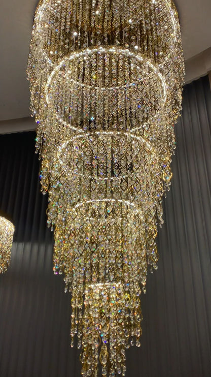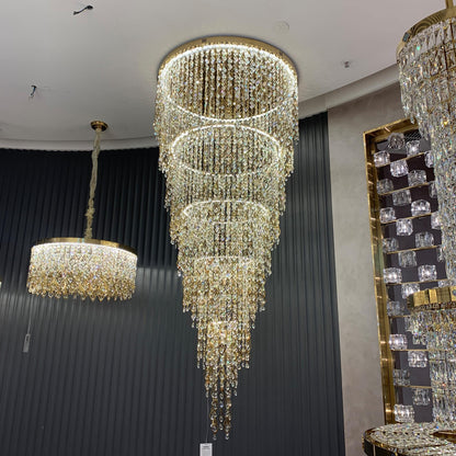 Modern Round 5-Layer Crystal Tassel Chandelier for Villa/Staircase/Foyer/Living Room