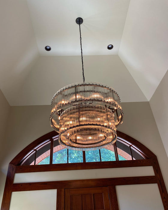 Rylight 2-Tier Round Handmade Fluted Glass Panels Chandelier