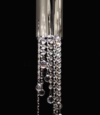 This chic Italian-style pendant lamp features a refined union of effortless minimalism and luxurious flair. With a sleek modern silhouette, stainless steel and crystal bead construction, and a shimmering silver finish, this chandelier exudes a sense of sophistication and fills any room with an air of spellbinding mystery.