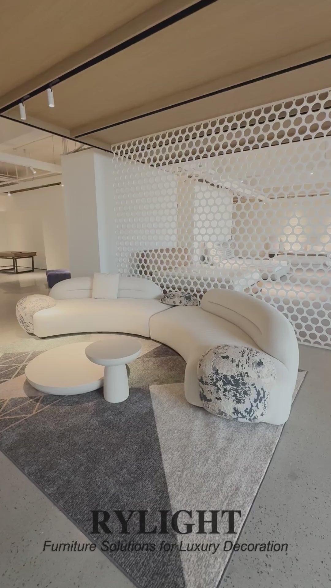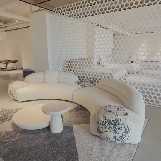 Rylight Contemporary Artistic Patterned Accent Beige Curved Modular Sofa