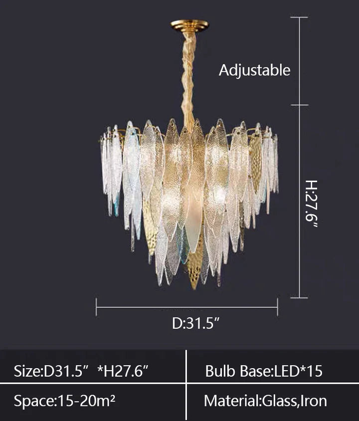 This unique and fashionable Rylight Multi-Tier Creative Colorful Glass Maple Leaves Chandelier is made of colorful glass, giving your living room an eye-catching presence. Its metal backing and glass maple leaves come in different shapes and textures to provide bright color contrast with any home decor. Perfect for adding a stylish touch to your dining room or living area.
