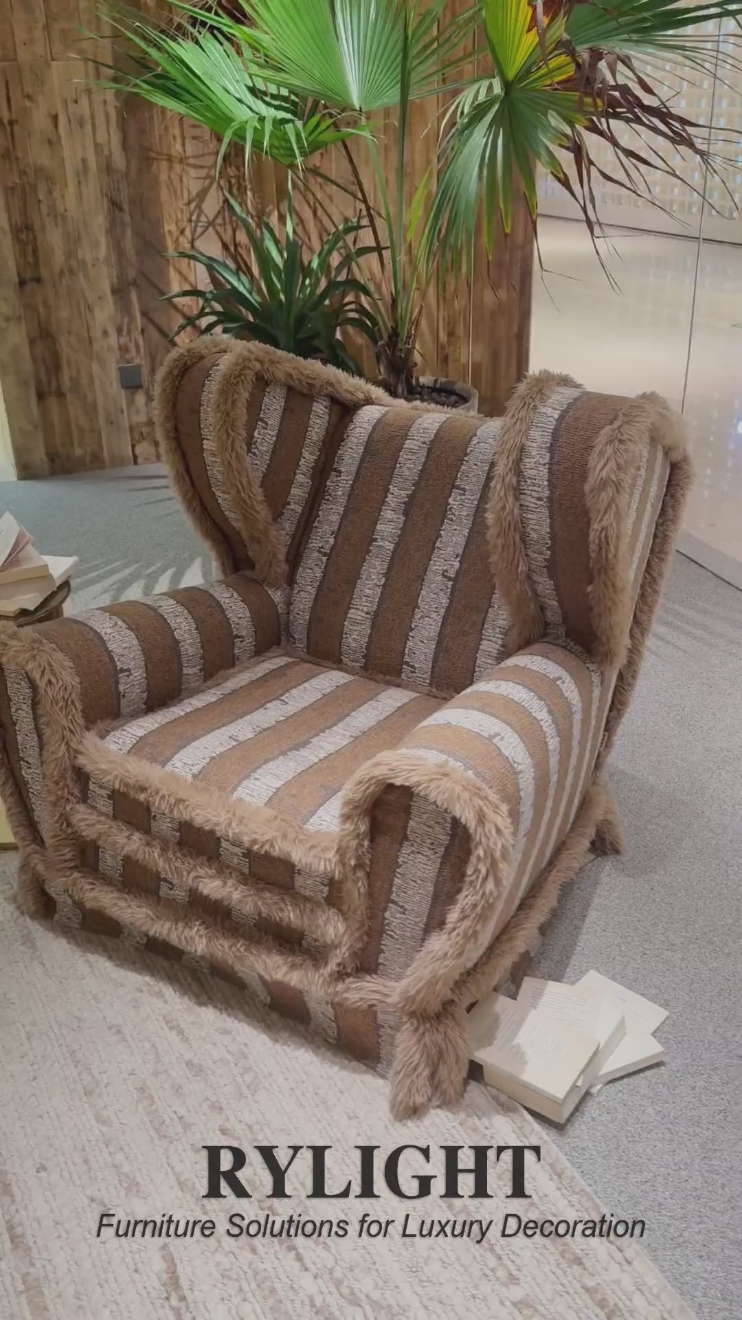 Rylight Vintage Luxury Striped Textured Fabric Wingback Lounge Chair